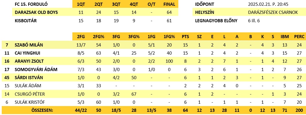 FC 15. fordul DARAZSAK/B - KISBOJTR