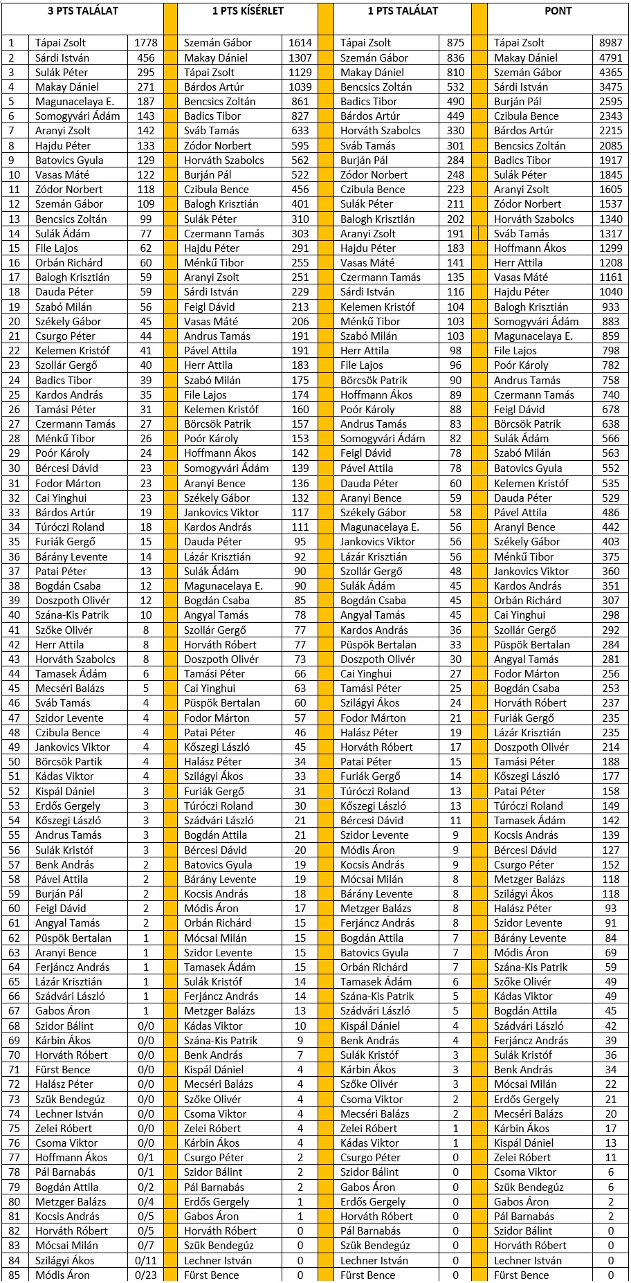 Old Boys rkranglista 3 TALLAT, 1 KSRLET, 1 TALLAT, PONT |