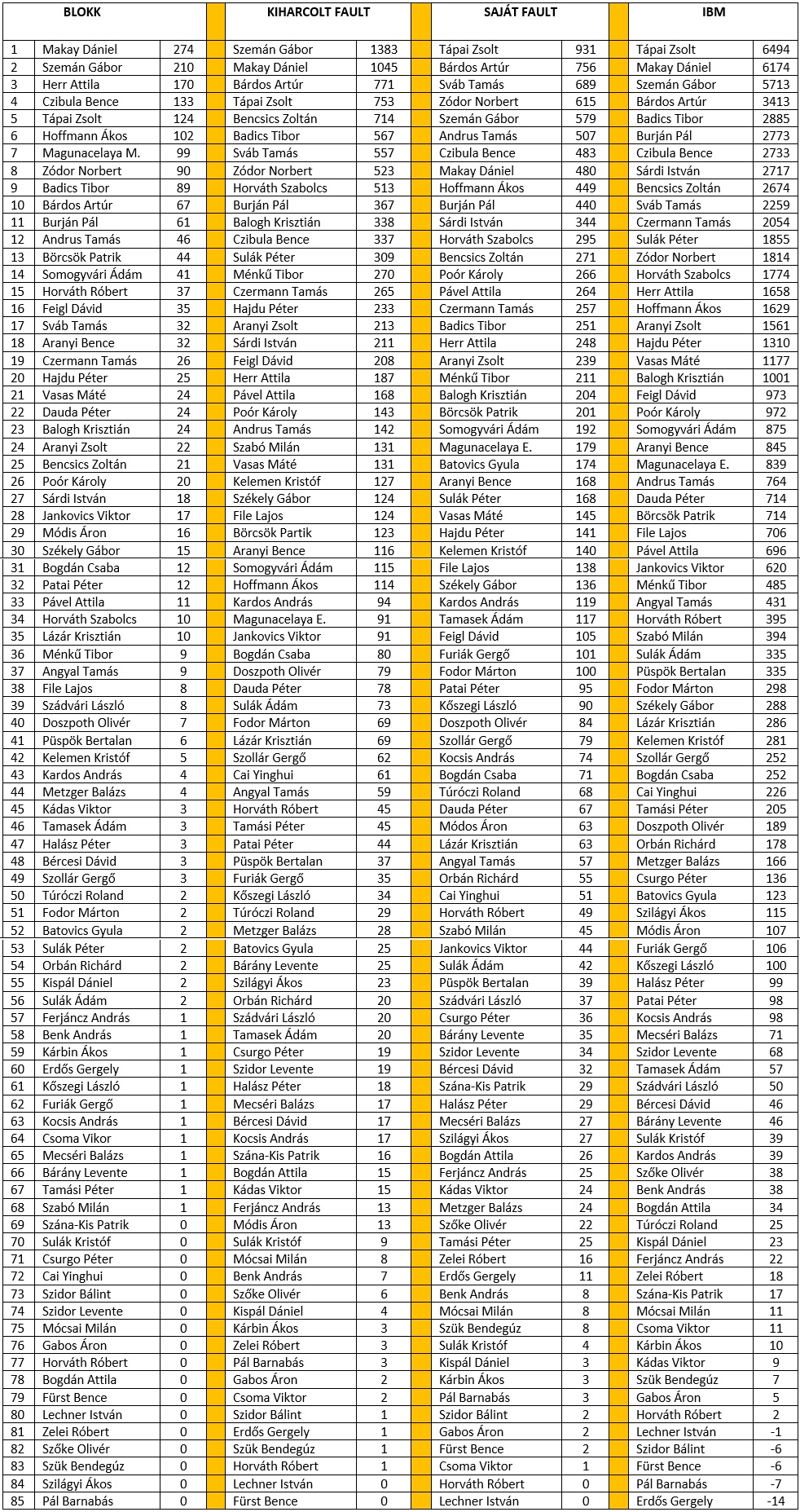 Old Boys rkranglista BLOKK, KIHARCOLT, SAJT, IBM |