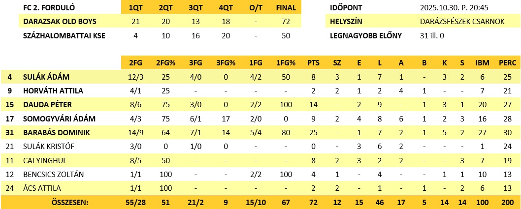 Old Boys rkranglista PERC, SZEZON, TECHNIKAI, KIPONTOZDS