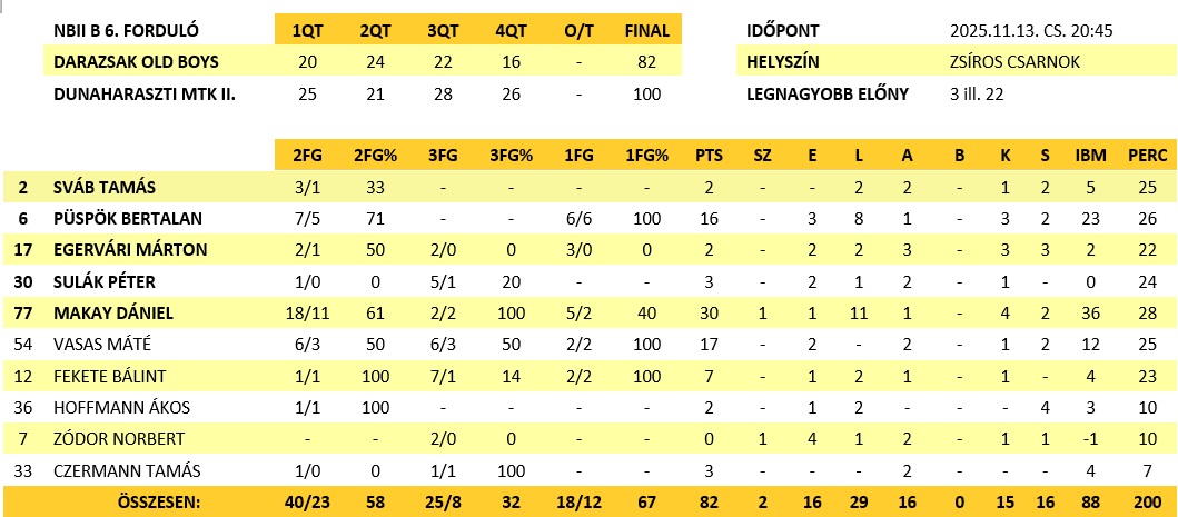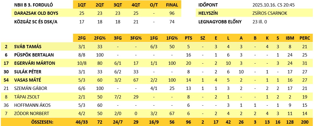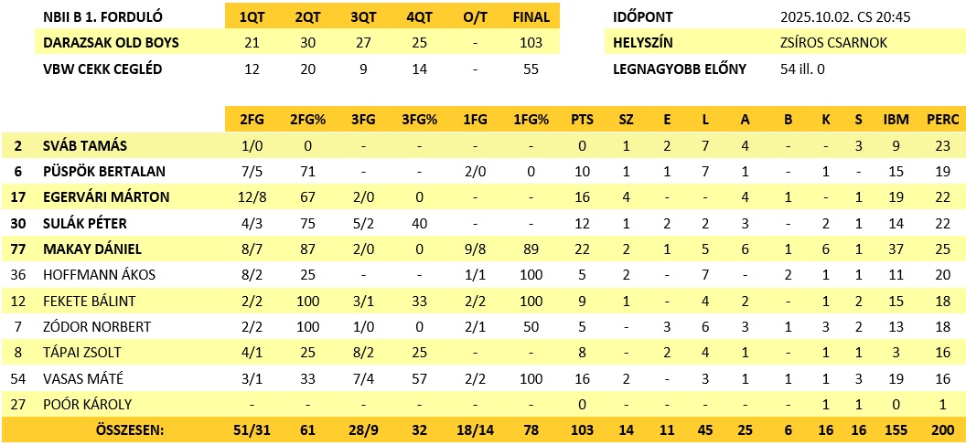NBII B 1. fordul DARAZSAK - VBW CEKK CEGLD