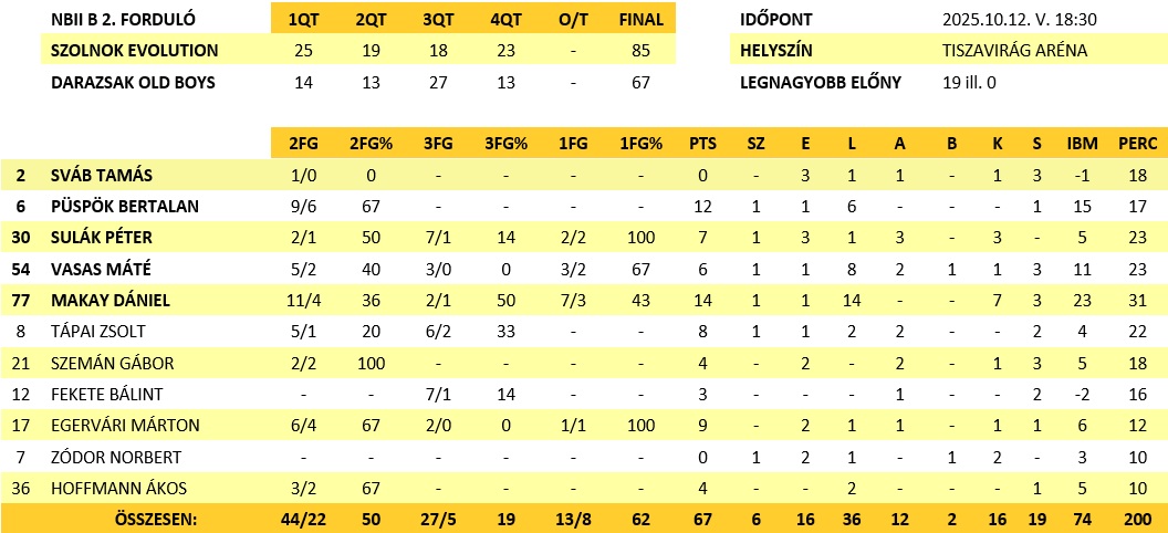 NBII B 2. fordul SZOLNOK EVOLUTION - DARAZSAK